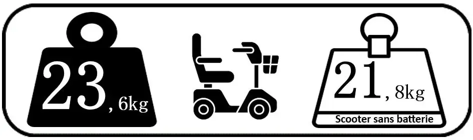 - Poids de l’assise avec accoudoirs = 5.5kg
