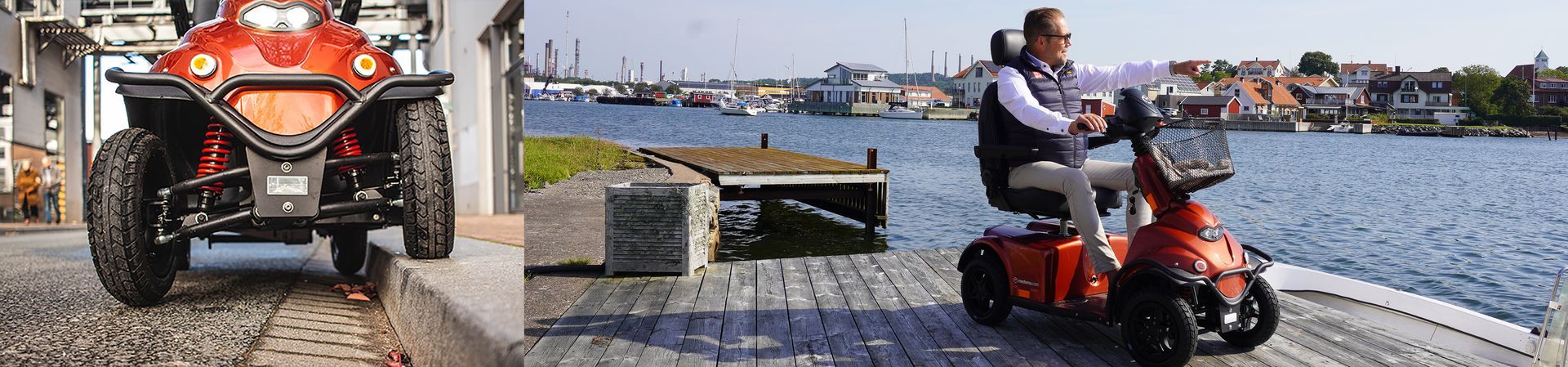 Notre produit emblématique, le Mini Crosser, est un scooter de mobilité haut de gamme fabriqué au Danemark depuis 1981.